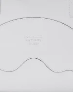 Cut and sew sharkmouth shape with embossed silver foil lettering.