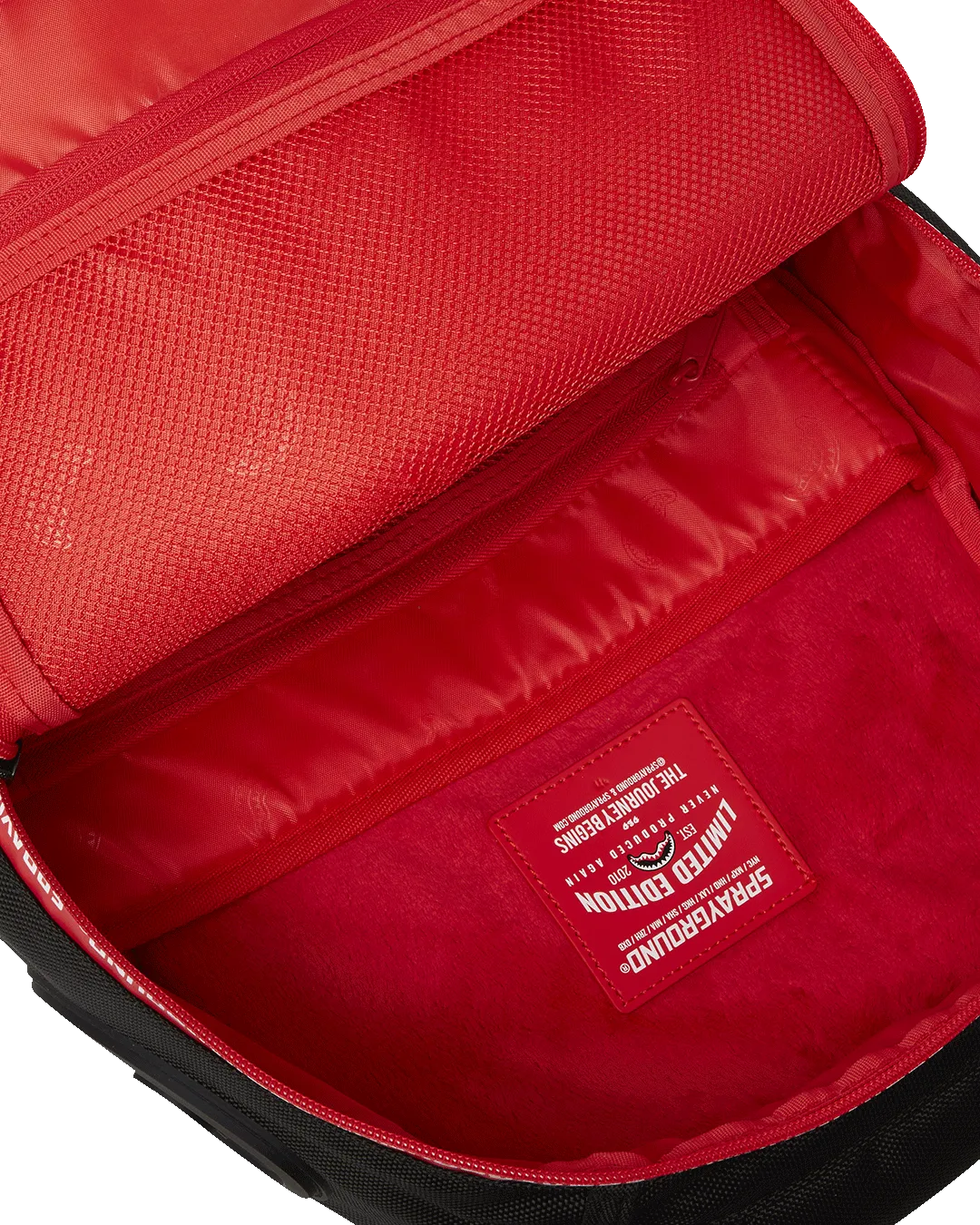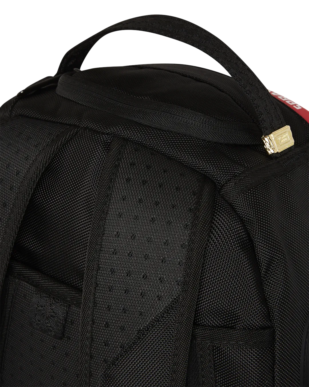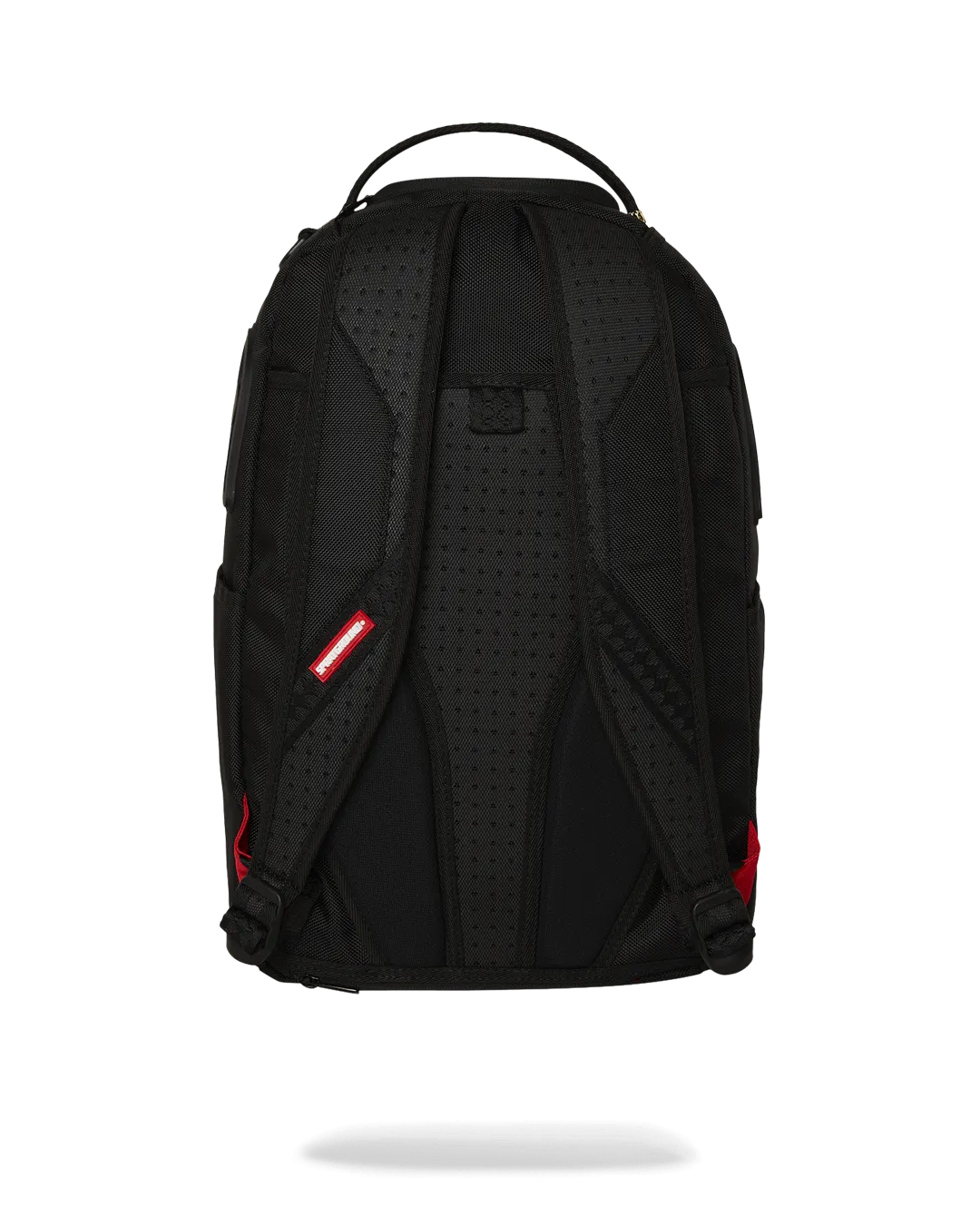 Dimensions: 18″ x 6″ x 11.5″ ? Front zipper pocket ? Side pockets ? Zippered Stash pocket ? Separate velour sunglass compartment ? Ergonomic mesh back padding ? Adjustable Straps for custom sizing ? Gold zippers with metal hardware ? Metal “Sprayground Authentic” badge ? Slide through back sleeve connects to carry-on luggage to free your hands