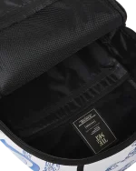 Dimensions: 18″ x 6″ x 11.5″ ? Front zipper pocket ? Side pockets ? Zippered Stash pocket ? Separate velour sunglass compartment ? Ergonomic mesh back padding ? Adjustable Straps for custom sizing ? Gold zippers with metal hardware ? Metal “Sprayground Authentic” badge ? Slide through back sleeve connects to carry-on luggage to free your hands