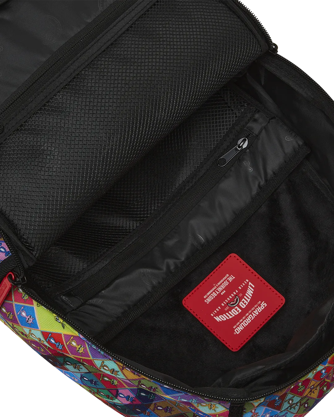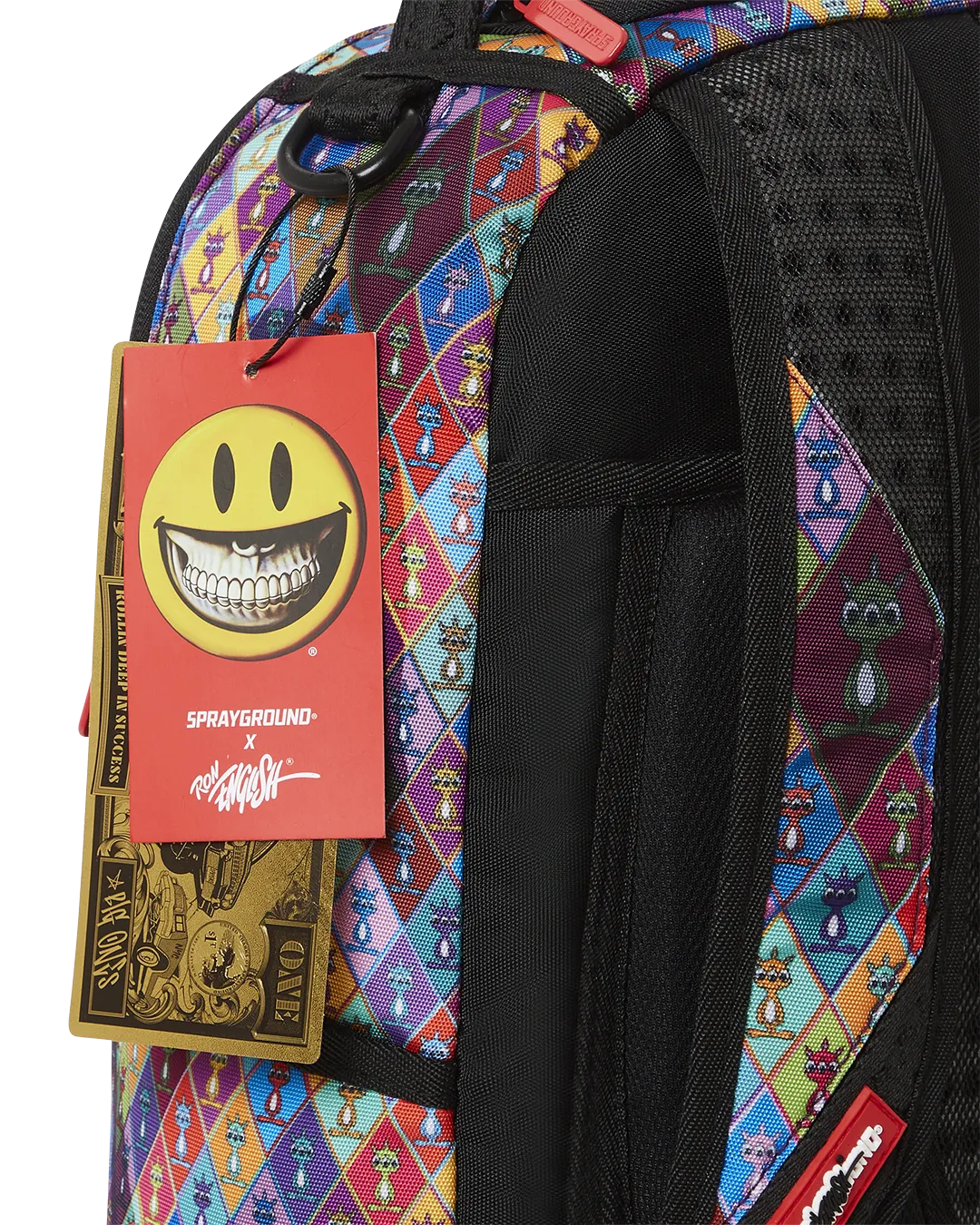 Dimensions: 18″ x 6″ x 11.5″ ? Front zipper pocket ? Side pockets ? Zippered Stash pocket ? Ergonomic mesh back padding ? Adjustable Straps for custom sizing ? Nylon Zippers with Metal Hardware ? Metal “Sprayground Authentic” badge ? Slide through back sleeve connects to Carry on luggage to free your hands