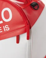 Dimensions: 18″ x 6″ x 11.5″ ? Front zipper pocket ? Side pockets ? Zippered Stash pocket ? Separate velour sunglass compartment ? Ergonomic mesh back padding ? Adjustable Straps for custom sizing ? Red zippers with metal hardware ? Metal “Sprayground Authentic” badge ? Slide through back sleeve connects to carry-on luggage to free your hands