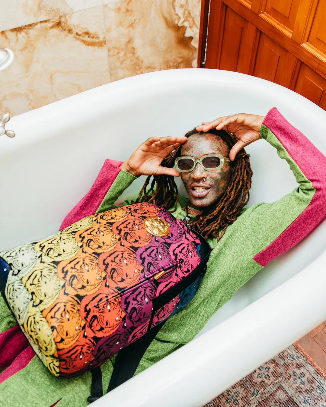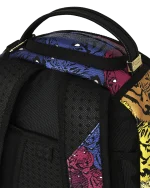 Dimensions: 18″ x 6″ x 11.5″ ? Front zipper pocket ? Side pockets ? Zippered Stash pocket ? Separate velour sunglass compartment ? Ergonomic mesh back padding ? Adjustable Straps for custom sizing ? Gold zippers with metal hardware ? Metal “Sprayground Authentic” badge ? Slide through back sleeve connects to carry-on luggage to free your hands