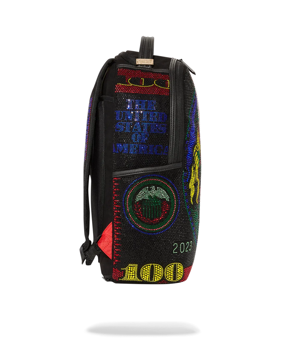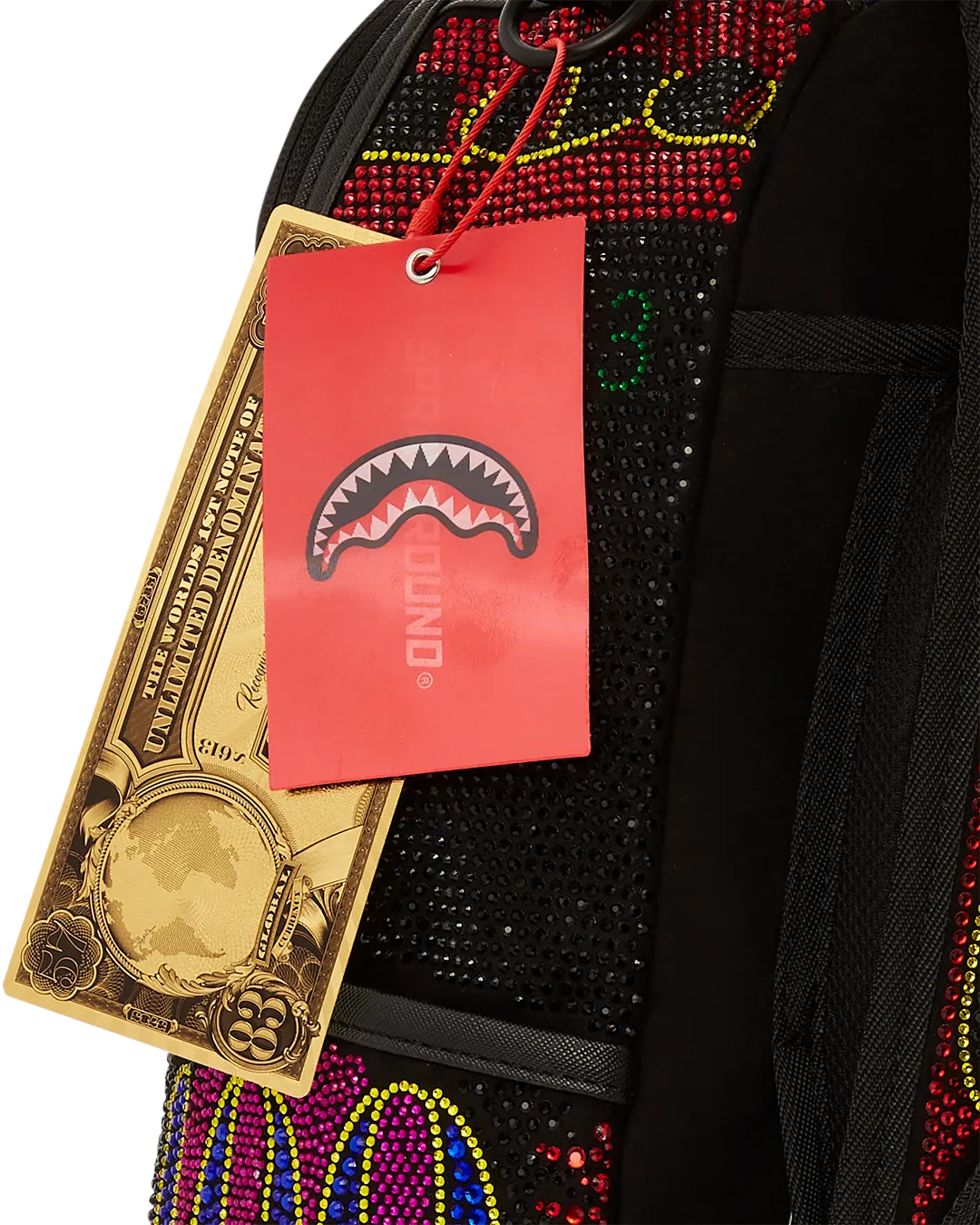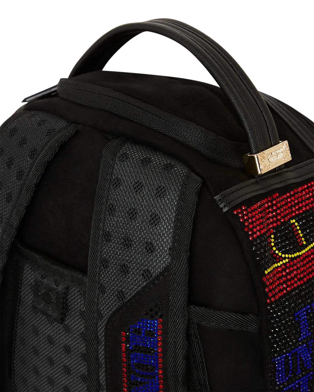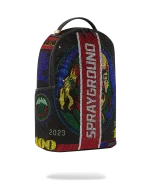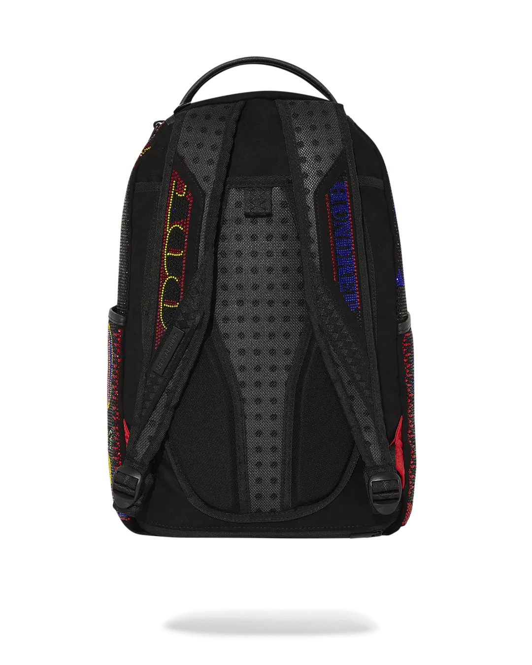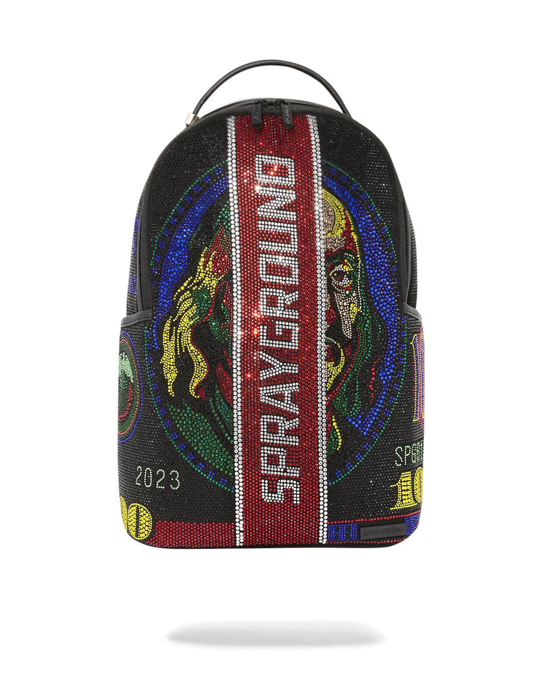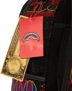 Dimensions: 18″ x 6″ x 11.5″ ? Front zipper pocket ? Side pockets ? Zippered Stash pocket ? Separate velour sunglass compartment ? Ergonomic mesh back padding ? Adjustable Straps for custom sizing ? Gold zippers with metal hardware ? Metal “Sprayground Authentic” badge ? Slide through back sleeve connects to carry-on luggage to free your hands