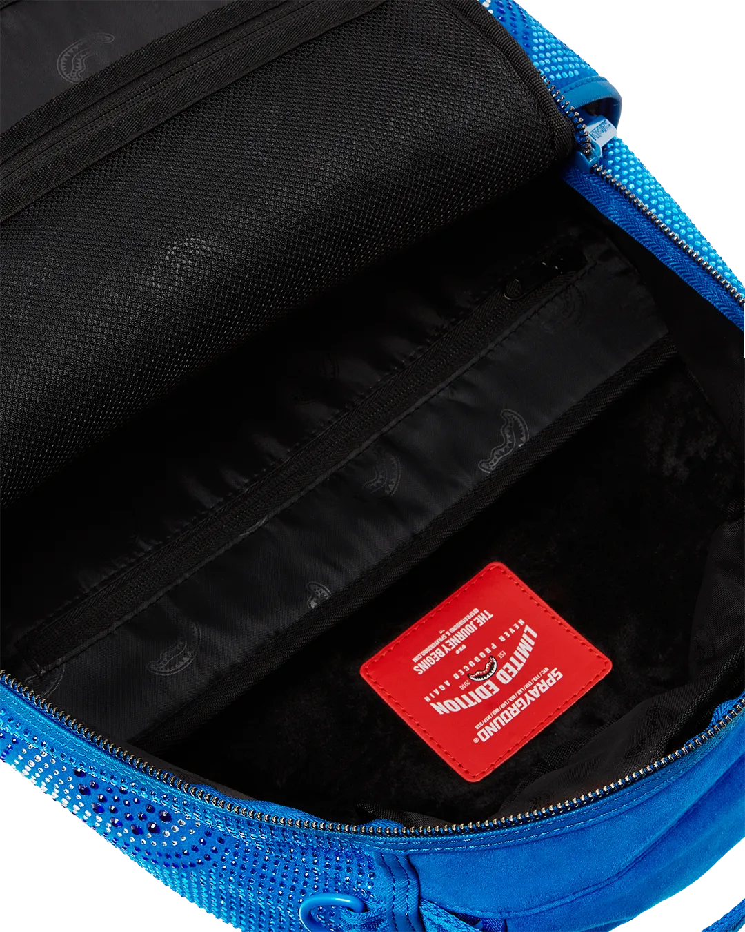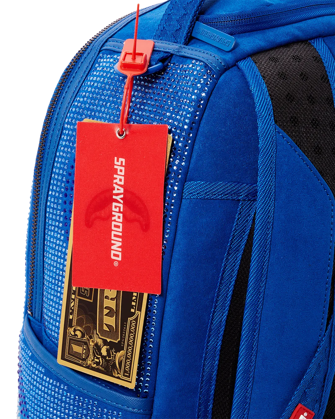 Dimensions: 18″ x 6″ x 11.5″ ? Front zipper pocket ? Side pockets ? Zippered Stash pocket ? Separate velour sunglass compartment ? Ergonomic mesh back padding ? Adjustable Straps for custom sizing ? Gold zippers with metal hardware ? Metal “Sprayground Authentic” badge ? Slide through back sleeve connects to carry-on luggage to free your hands