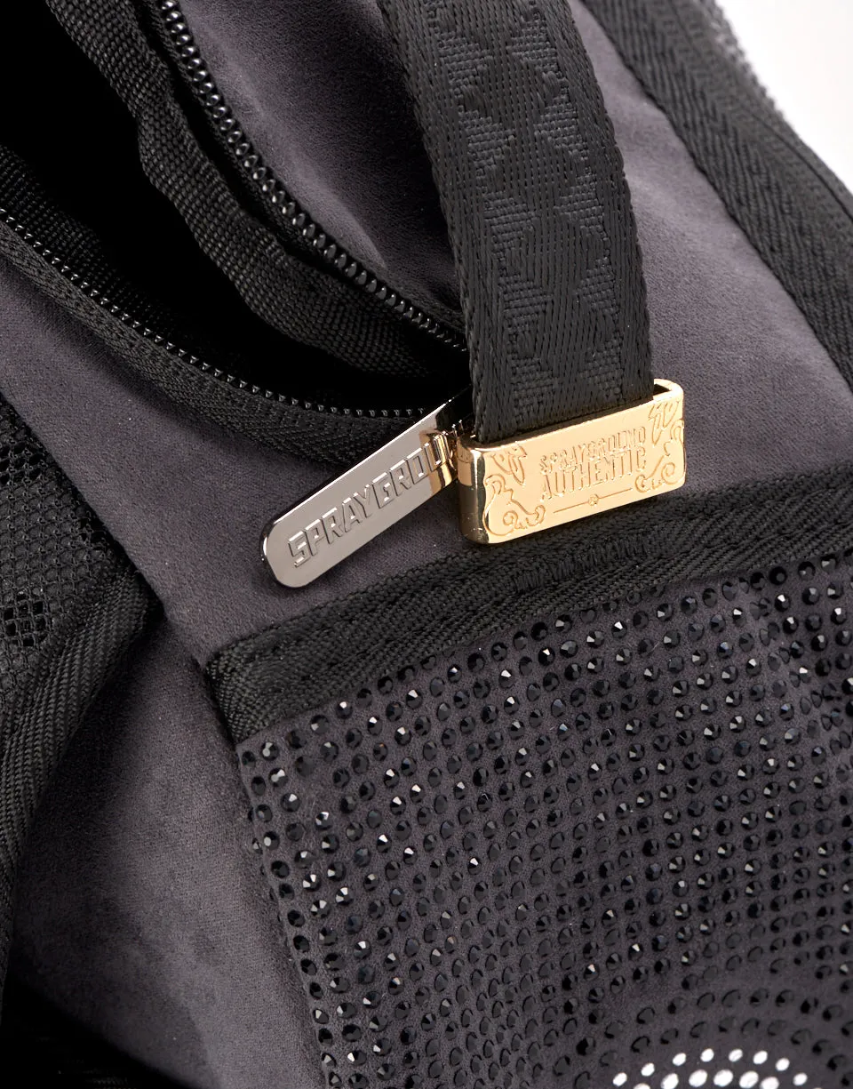 Dimensions: 18″ x 6″ x 11.5″ ? Front zipper pocket ? Side pockets ? Zippered Stash pocket ? Separate velour sunglass compartment ? Ergonomic mesh back padding ? Adjustable Straps for custom sizing ? Gunmetal zippers with metal hardware ? Metal “Sprayground Authentic” badge ? Slide through back sleeve connects to carry-on luggage to free your hands