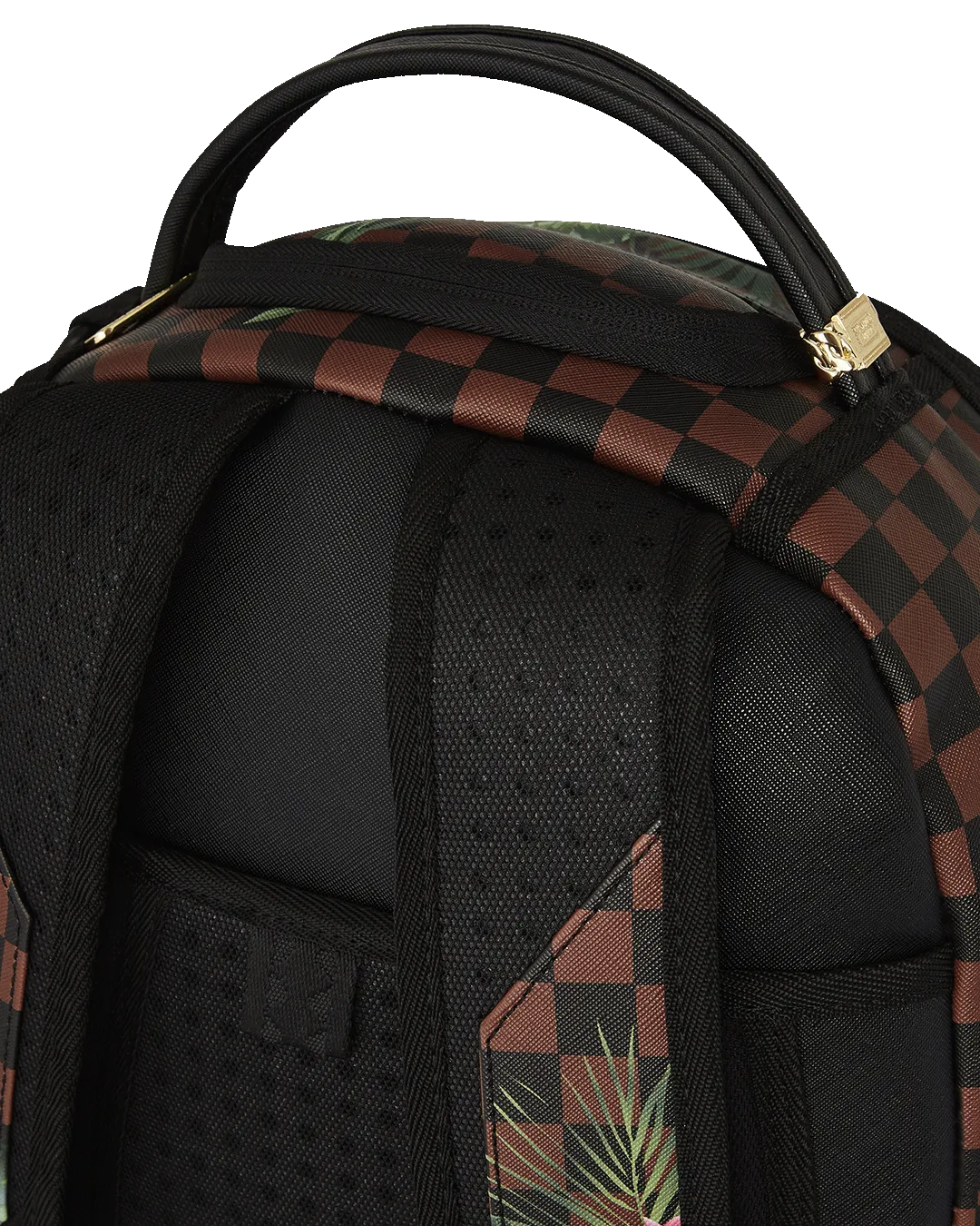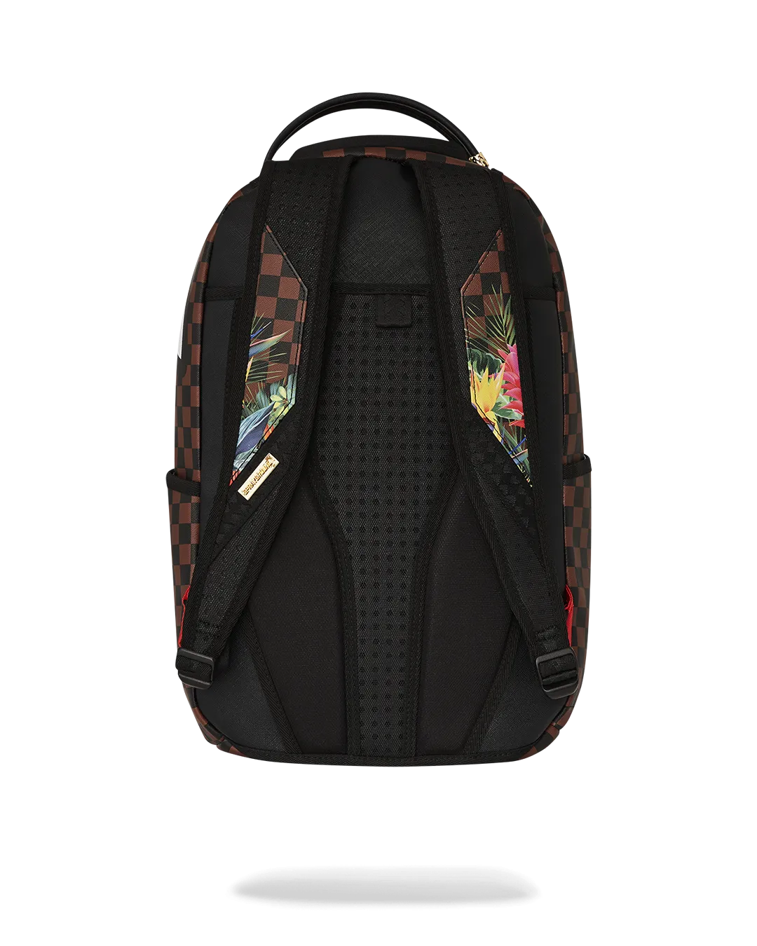 Dimensions: 18″ x 6″ x 11.5″ ? Front zipper pocket ? Side pockets ? Zippered Stash pocket ? Separate velour sunglass compartment ? Ergonomic mesh back padding ? Adjustable Straps for custom sizing ? Gold zippers with metal hardware ? Metal “Sprayground Authentic” badge ? Slide through back sleeve connects to carry-on luggage to free your hands