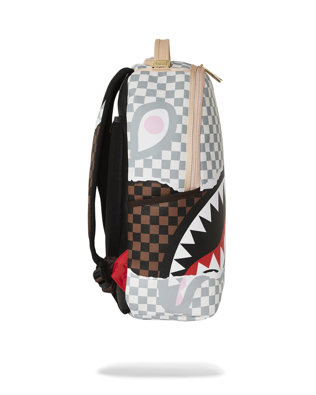 Dimensions: 18″ x 6″ x 11.5″ ? Front zipper pocket ? Side pockets ? Zippered Stash pocket ? Separate velour sunglass compartment ? Ergonomic mesh back padding ? Adjustable Straps for custom sizing ? Gold zippers with metal hardware ? Metal “Sprayground Authentic” badge ? Slide through back sleeve connects to carry-on luggage to free your hands