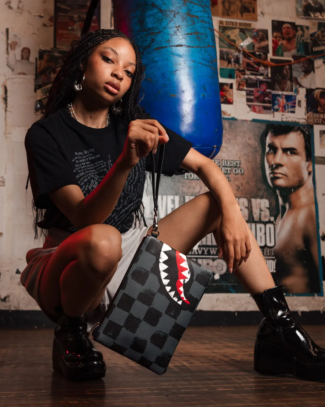 Pouch with removable wristlet strap, Handle on front panel, Zip Closure