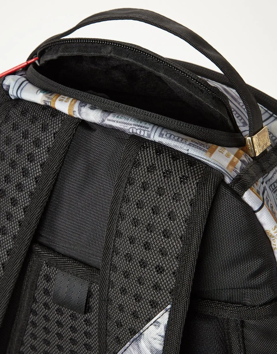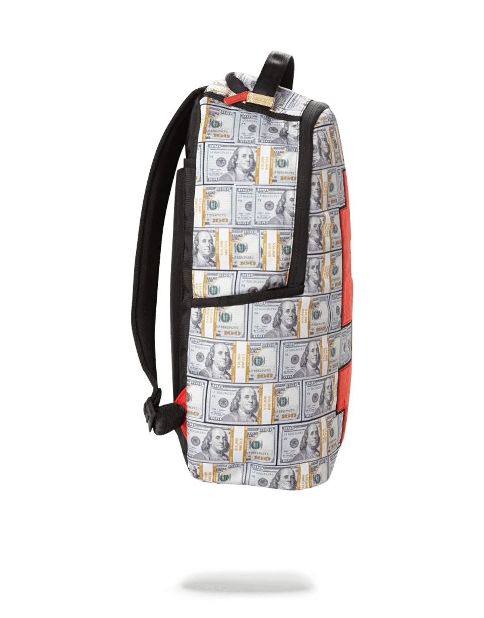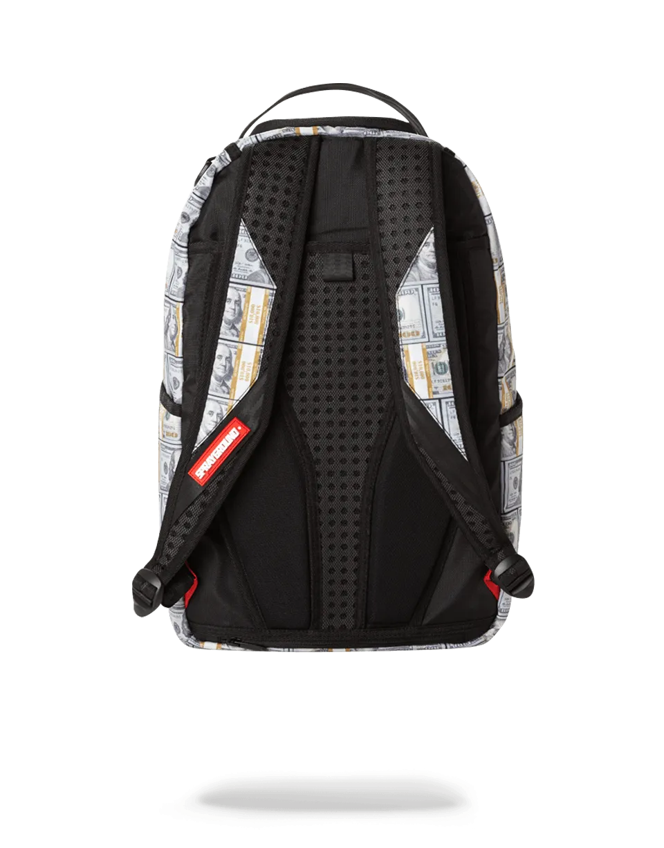Dimensions: 18″ x 6″ x 11.5″ ? Front zipper pocket ? Side pockets ? Zippered Stash pocket ? Ergonomic mesh back padding ? Adjustable Straps for custom sizing ? Nylon Zippers with Metal Hardware ? Metal “Sprayground Authentic” badge ? Slide through back sleeve connects to Carry on luggage to free your hands ? Velour Money Sign Patch?