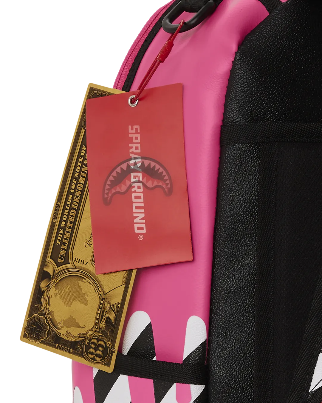 Dimensions: 18″ x 6″ x 11.5″ ? Front zipper pocket ? Side pockets ? Zippered Stash pocket ? Separate velour sunglass compartment ? Ergonomic mesh back padding ? Adjustable Straps for custom sizing ? Gold zippers with metal hardware ? Metal “Sprayground Authentic” badge ? Slide through back sleeve connects to carry-on luggage to free your hands