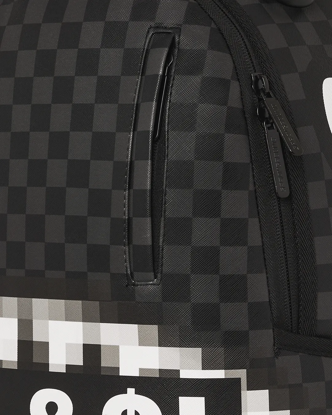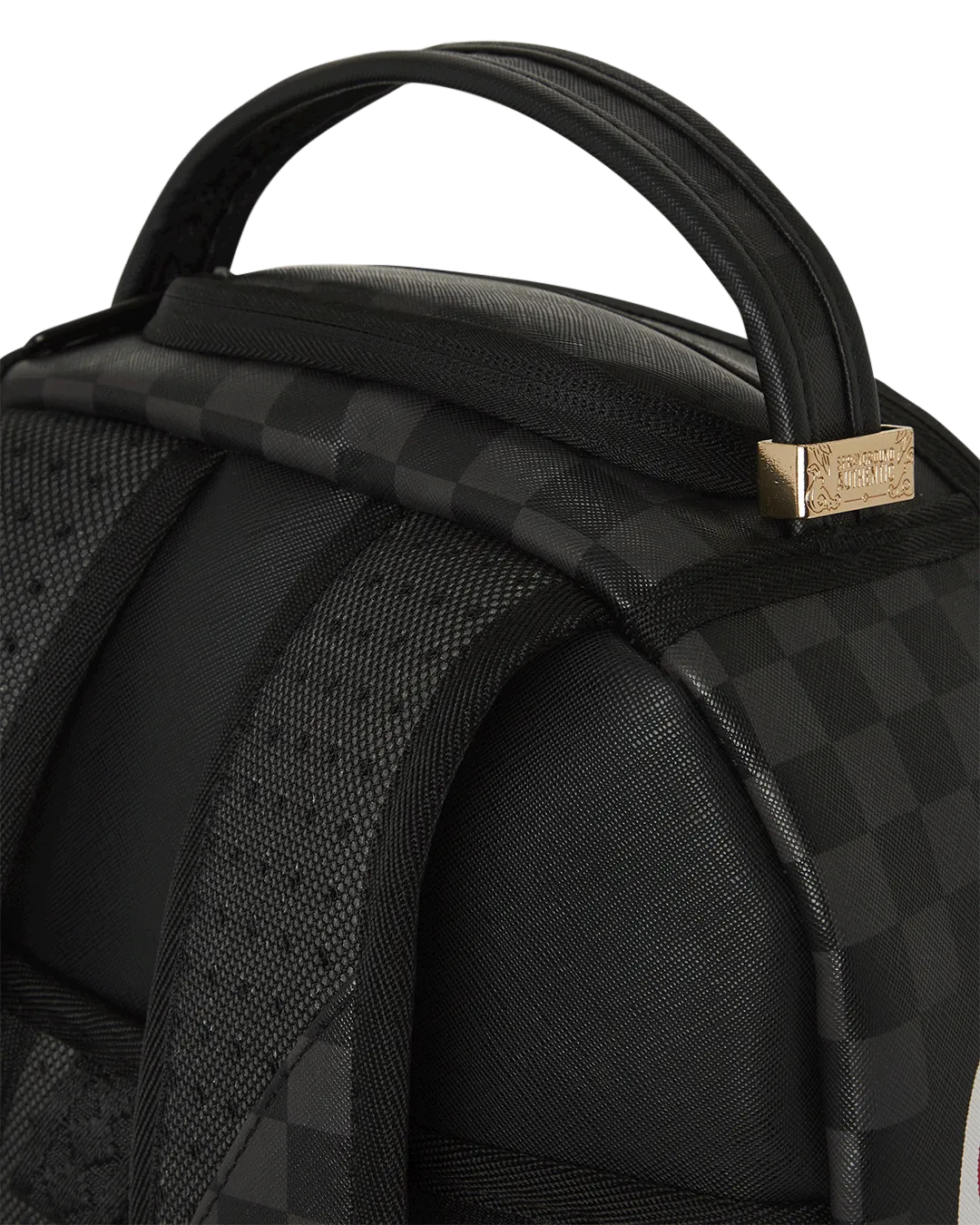 Dimensions: 18″ x 6″ x 11.5″ ? Front zipper pocket ? Side pockets ? Zippered Stash pocket ? Separate velour sunglass compartment ? Ergonomic mesh back padding ? Adjustable Straps for custom sizing ? Gold zippers with metal hardware ? Metal “Sprayground Authentic” badge ? Slide through back sleeve connects to carry-on luggage to free your hands