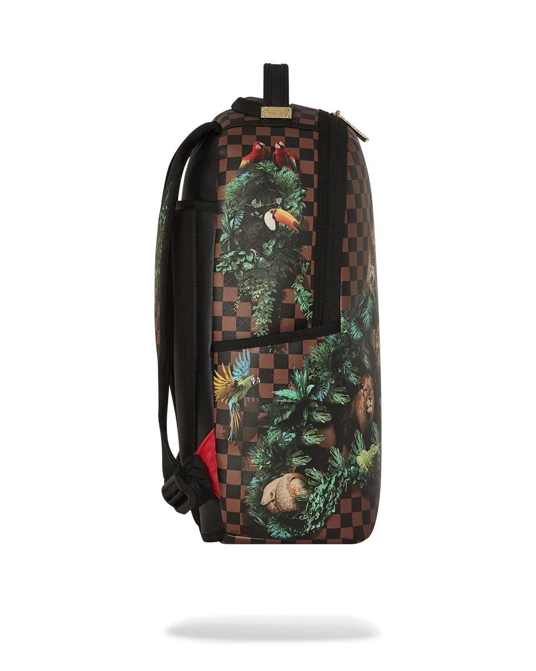 Dimensions: 18″ x 6″ x 11.5″ ? Front zipper pocket ? Side pockets ? Zippered Stash pocket ? Separate velour sunglass compartment ? Ergonomic mesh back padding ? Adjustable Straps for custom sizing ? Gold zippers with metal hardware ? Metal “Sprayground Authentic” badge ? Slide through back sleeve connects to carry-on luggage to free your hands