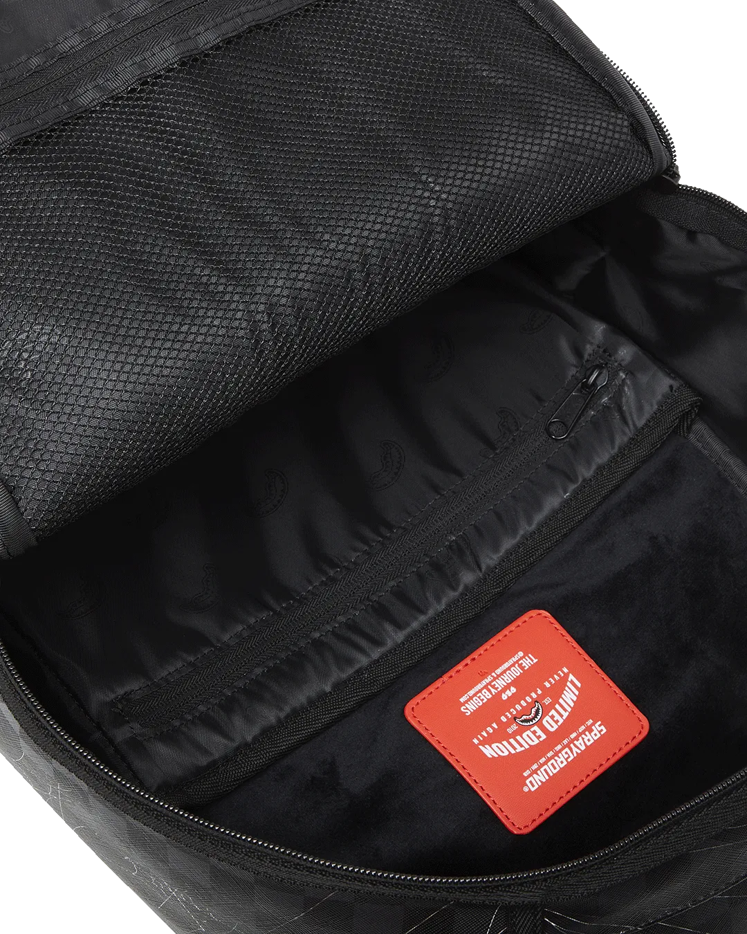 Dimensions: 18″ x 6″ x 11.5″ ? Front zipper pocket ? Side pockets ? Zippered Stash pocket ? Separate velour sunglass compartment ? Ergonomic mesh back padding ? Adjustable Straps for custom sizing ? Gold zippers with metal hardware ? Metal “Sprayground Authentic” badge ? Slide through back sleeve connects to carry-on luggage to free your hands