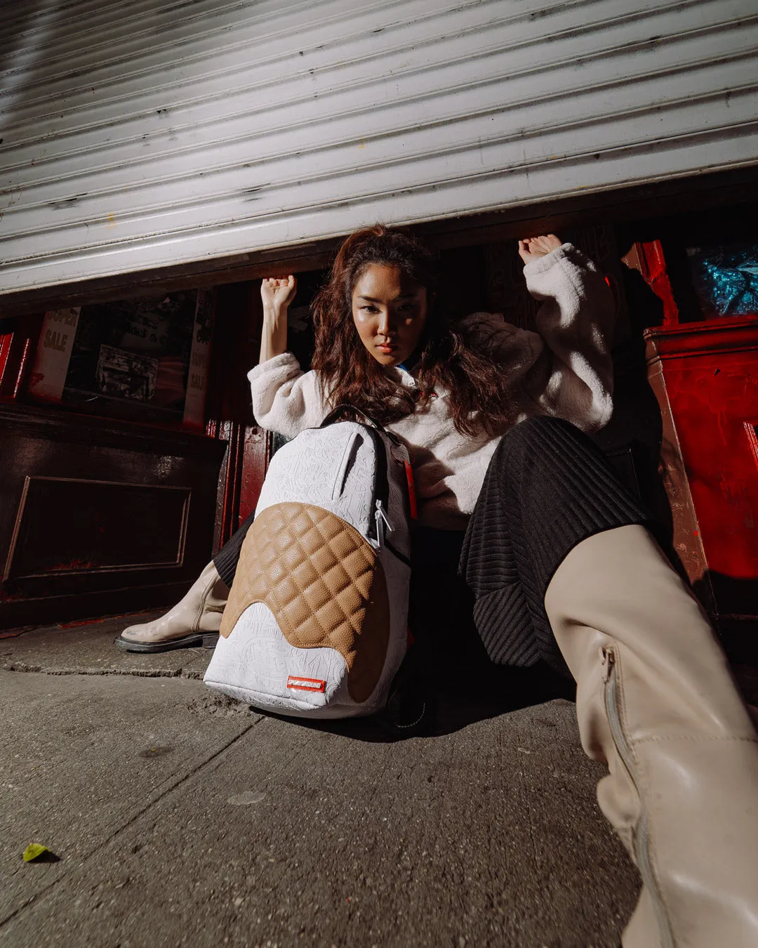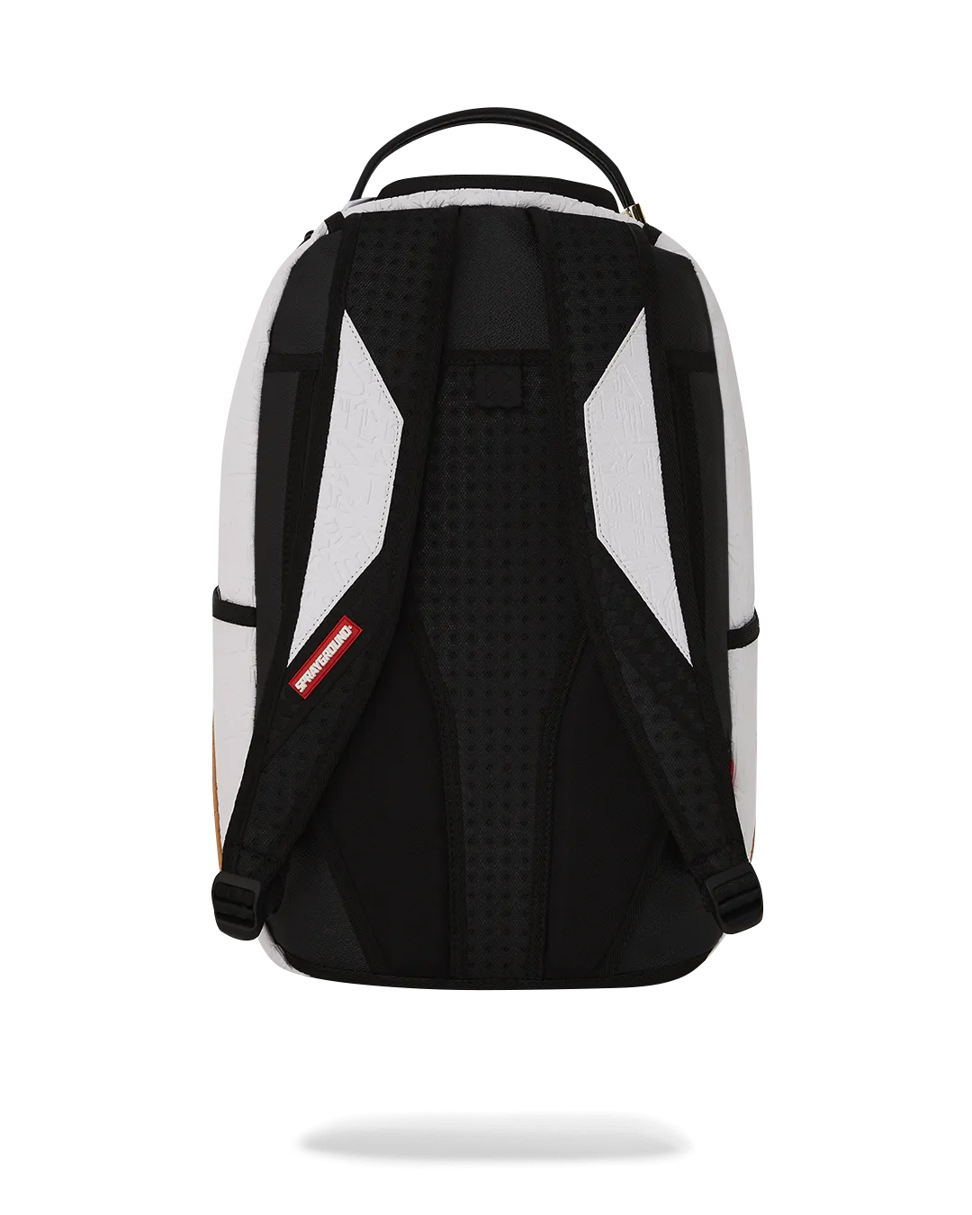 Dimensions: 18″ x 6″ x 11.5″ ? Front zipper pocket ? Side pockets ? Zippered Stash pocket ? Separate velour sunglass compartment ? Ergonomic mesh back padding ? Adjustable Straps for custom sizing ? Gold zippers with metal hardware ? Metal “Sprayground Authentic” badge ? Slide through back sleeve connects to carry-on luggage to free your hands